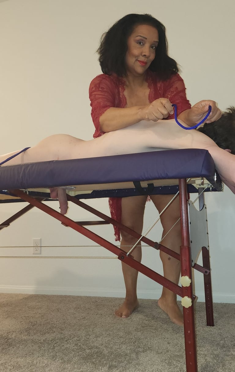 An hour-long session is a unique and sensual blend of bondage and massage skills. Allowing you to experience all parts of Me. designed to heighten physical and emotional pleasure. It involves the recipient being bound, blindfolded, and expertly massaged to enhance sensory stimulation and relaxation. It's a deeply immersive experience that combines elements of trust, surrender, and erotic exploration.